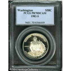 1982-S 50C Washington Silver Half Dollar PR70 Deep C <B>1982-S 50C Washington Silver Half Dollar PR70 Deep Cameo PCGS.</B></I> A flawless white on black cameo. A truly beautiful coin! Population: 28 in 70 (10/04). <BR><BR><B>Important notice:</B> Heritage usually auctions material at the rate of 200-250 lots per hour. On some occasions eBay Live bid software or the Internet may not be able to keep up with the pace of the auction. We recommend placing a realistic absentee bid now as insurance to avoid disappointment. Occasionally the auctioneer may eliminate or reject an eBay Live bid, and the auctioneer may also reopen a lot after the close of the eBay live bidding (usually because we missed an audience bid), and may reject your bid even if it shows you as the winning bidder. By bidding via eBay Live, you agree that Heritage may award the lot to another bidder at its sole discretion under the circumstances described above or any other reasonable circumstances. Since eBay bids are not shown to us until we open the lot on the floor, we treat those bids just like floor bids. In most cases the floor responds before the eBay bid is presented to us, due to Internet lag time, so for consistency we have made it a policy that floor bids are always considered first over tie eBay live bids. Also please note that all Heritage lots purchased through eBay Live carry a 20% Buyer's Premium. Please make sure you read the Terms and Conditions before you bid. This lot is being auctioned in conjunction with a live floor auction by Heritage Galleries & Auctioneers. All final auction and invoice information will be supplied by Heritage Galleries & Auctioneers, and all other information should be considered preliminary. Lot:7999