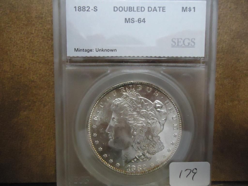 1882-S DOUBLED DATE MORGAN SILVER $ SEGS MS64