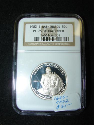 1982-S WASHINGTON 250TH ANNIVERSARY COMMEMORATIVE HALF DOLLAR. Graded by NGC. PF 69 Ultra Cameo.