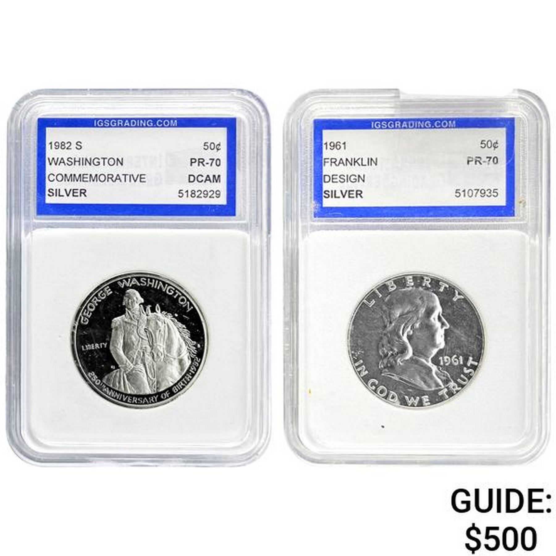 1982-S Washington 50C ICG MS70&1961 Frank ICG PR69
