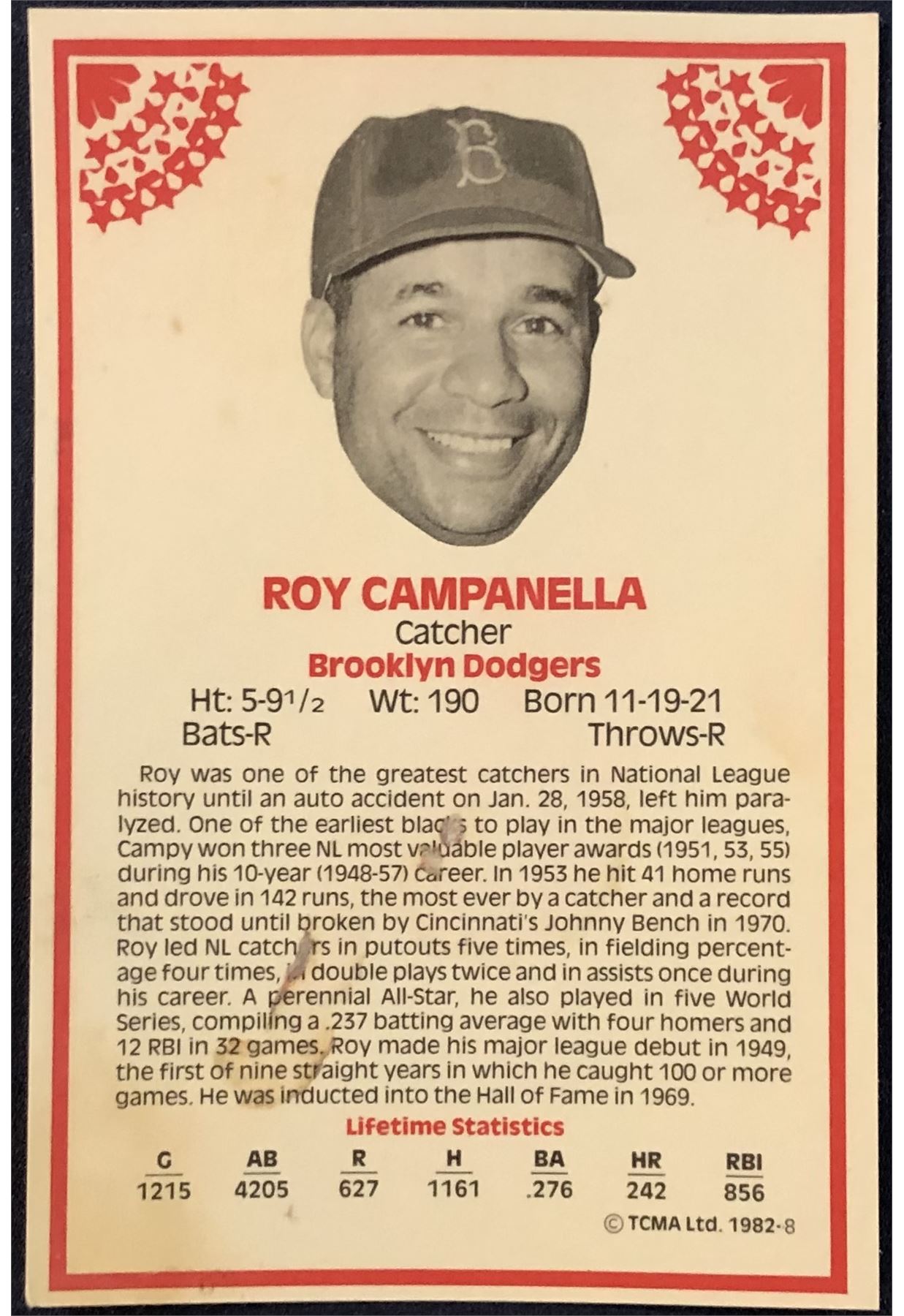 5.5"x3.75" card #8 stain on back