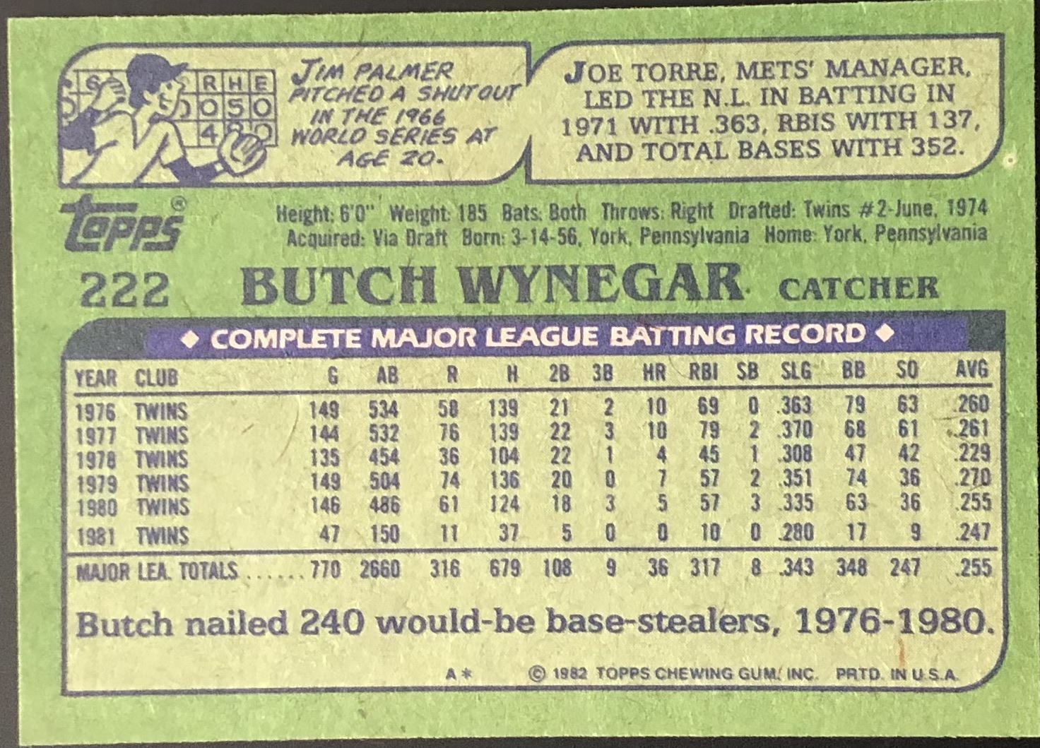 Card #222 MLB, baseball, vintage, rookie