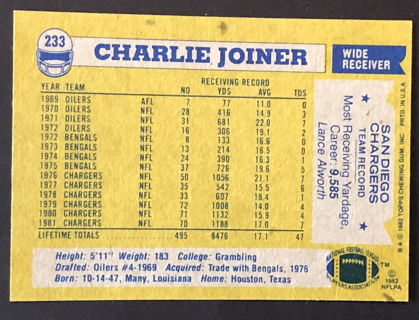 Card #233 NFL, football, hall of fame