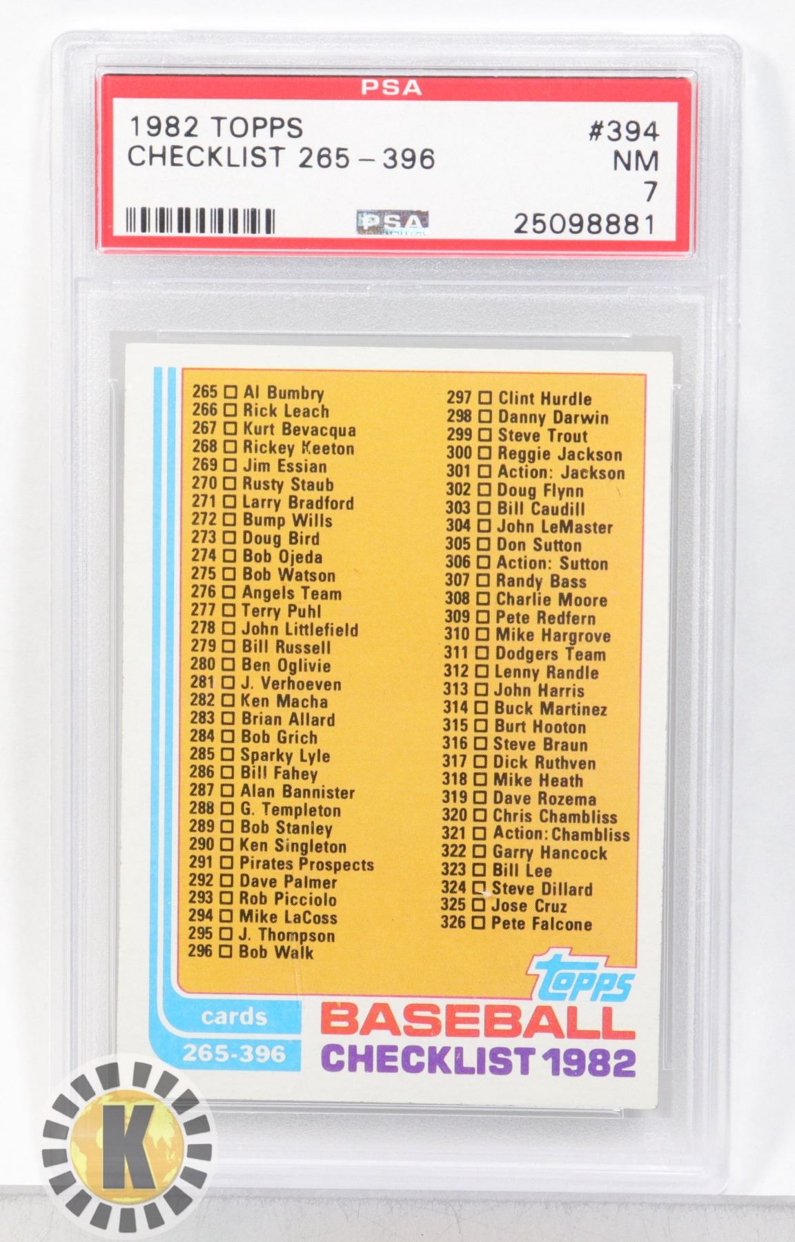 1982 TOPPS CHECKLIST 256-396 PSA GRADED 7 CARD