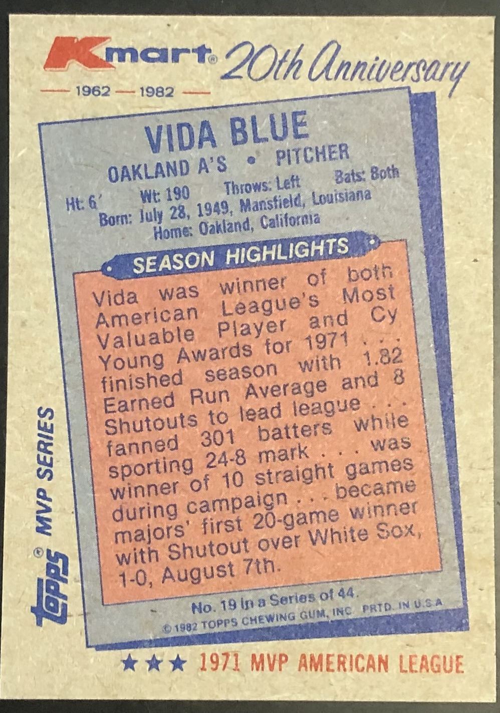 Card #19 MLB, baseball, vintage, hall of fame