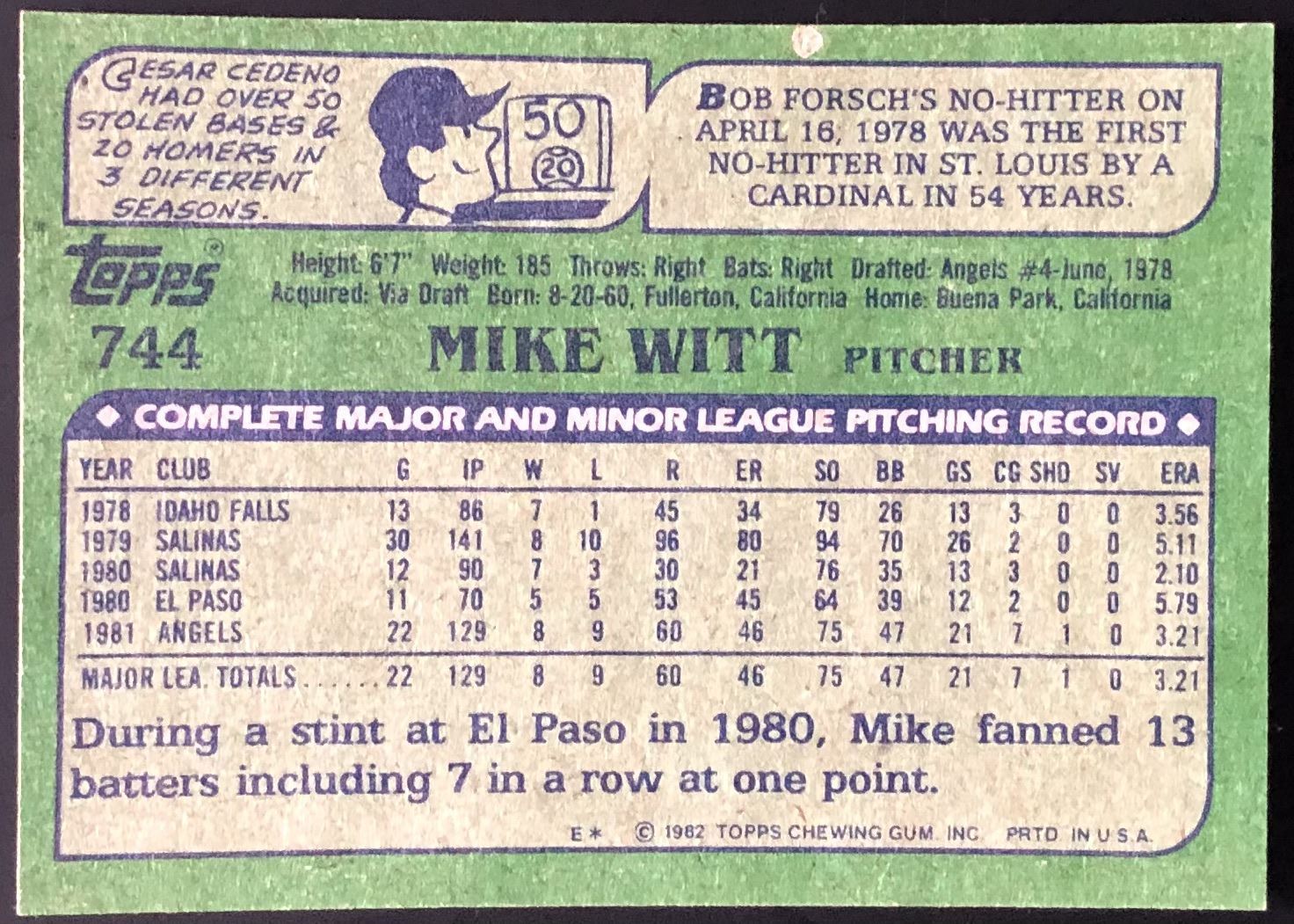 Card #744 MLB,baseball, vintage, rookie