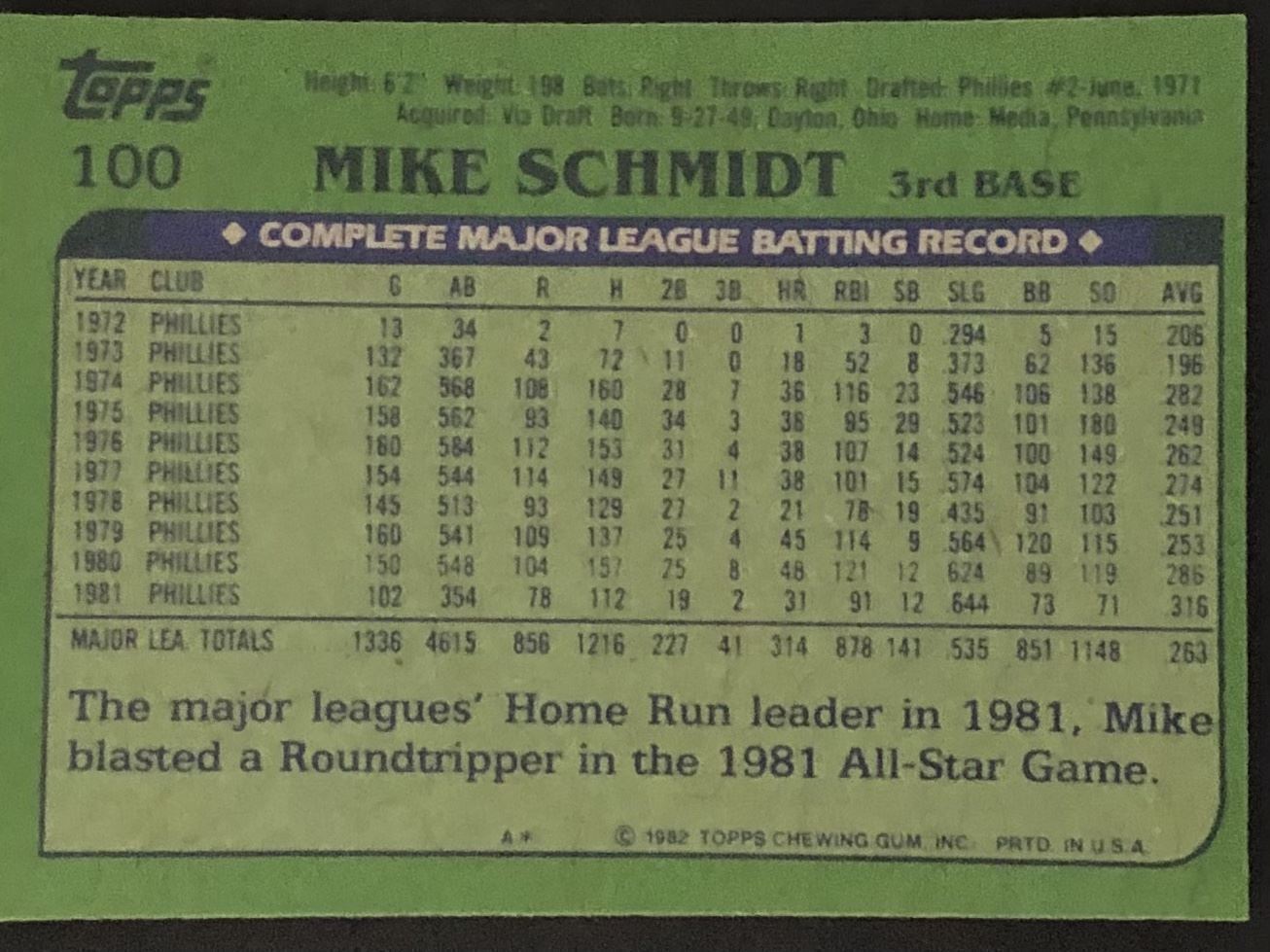 Card #100 baseball, vintage, HALL OF FAME
