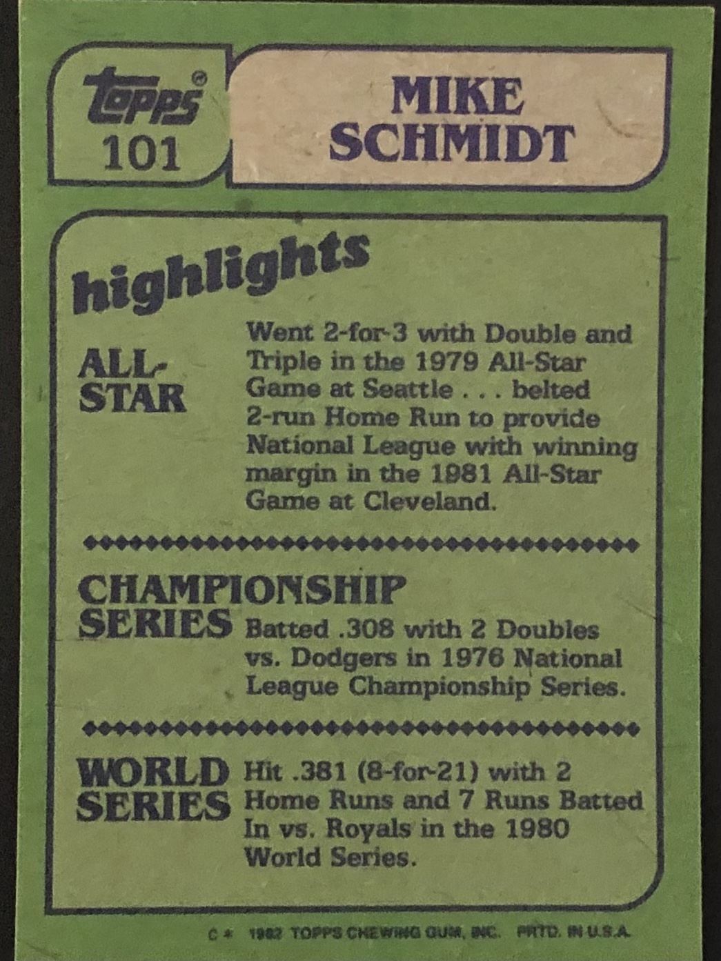 Card #101 baseball, vintage, HALL OF FAME