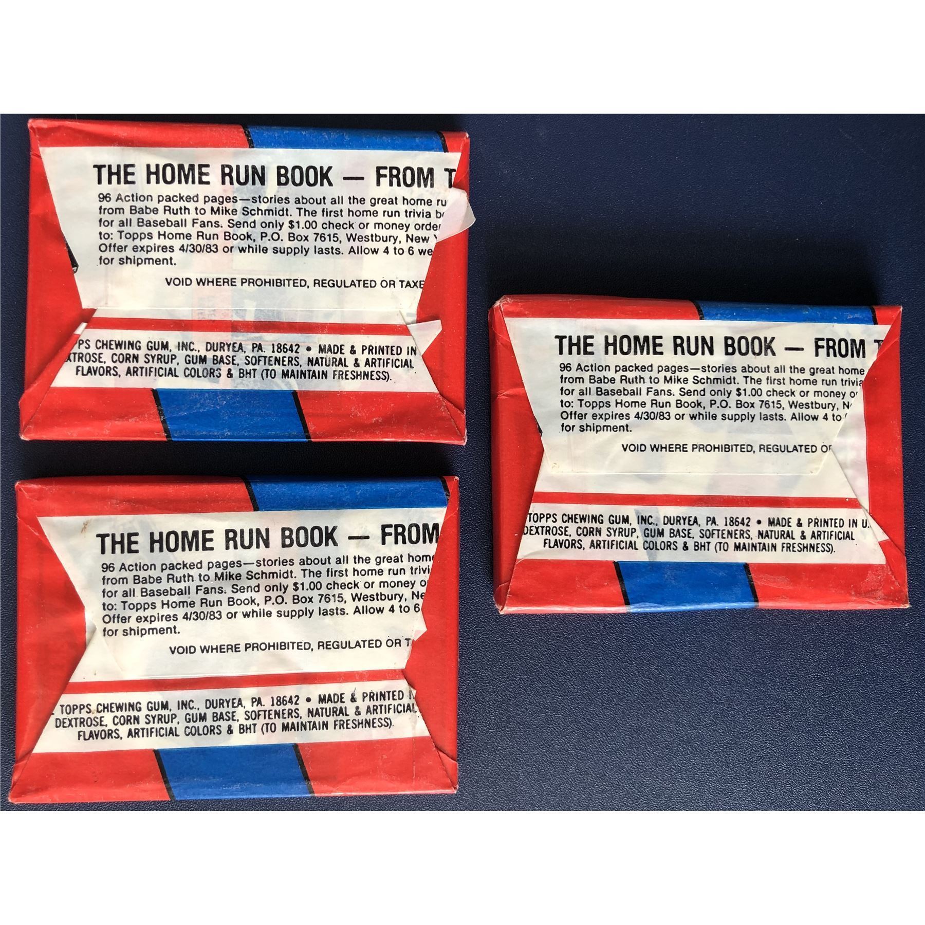 3 unopened wax packs, 15 cards & gum in each. Set includes rookie cards of HOF'ers Ronnie Lott, Lawrence Taylor, Anthony Munoz, Cris Collinsworth and 2nd year card of Joe Montana