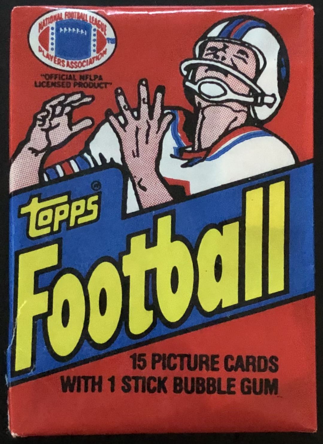 Unopened wax pack, 15 cards & gum in each. Set includes rookie cards of HOF'ers Ronnie Lott, Lawrence Taylor, Anthony Munoz, Cris Collinsworth and 2nd year card of Joe Montana