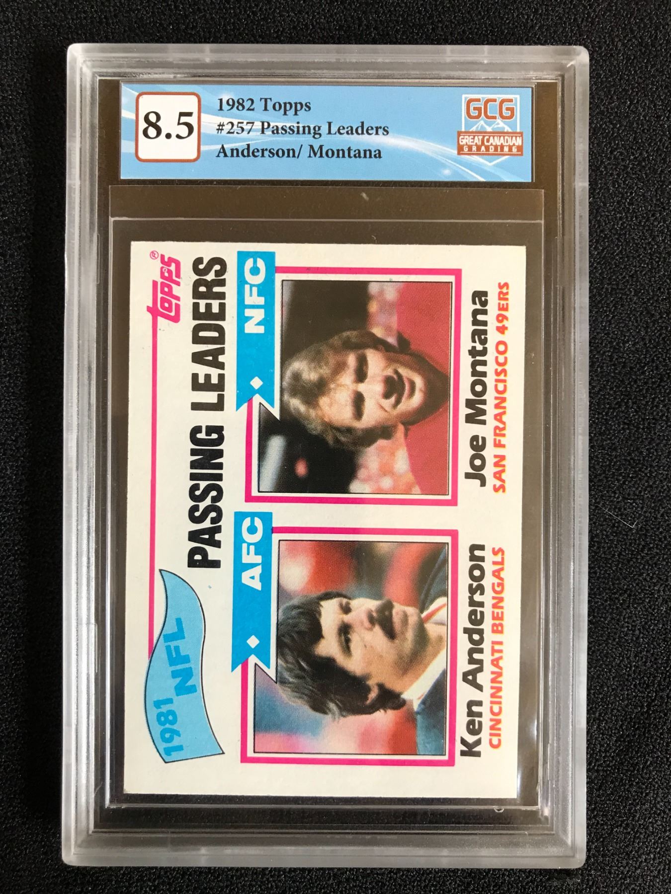 1982 TOPPS NO.257 PASSING LEADERS ANDERSON/ MONTANA (GCG 8.5)