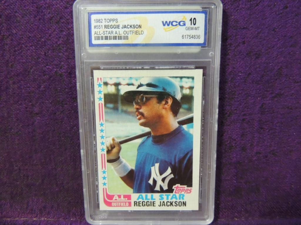 1982 TOPPS REGGIE JACKSON # 551 ALL STAR AL OUTFIELD GRADED 10 GEM-MT. GRADED BY WCG. AS SHOWN. SEE PHOTO FOR MORE DETAILS.