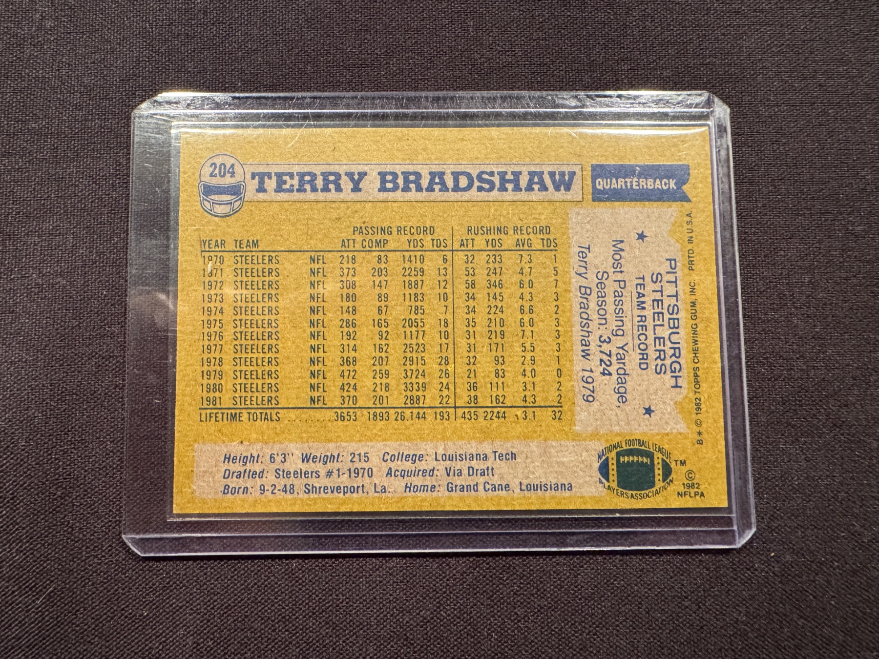1982 Terry Bradshaw Pittsburgh Steelers Football Card - Exceptional Card