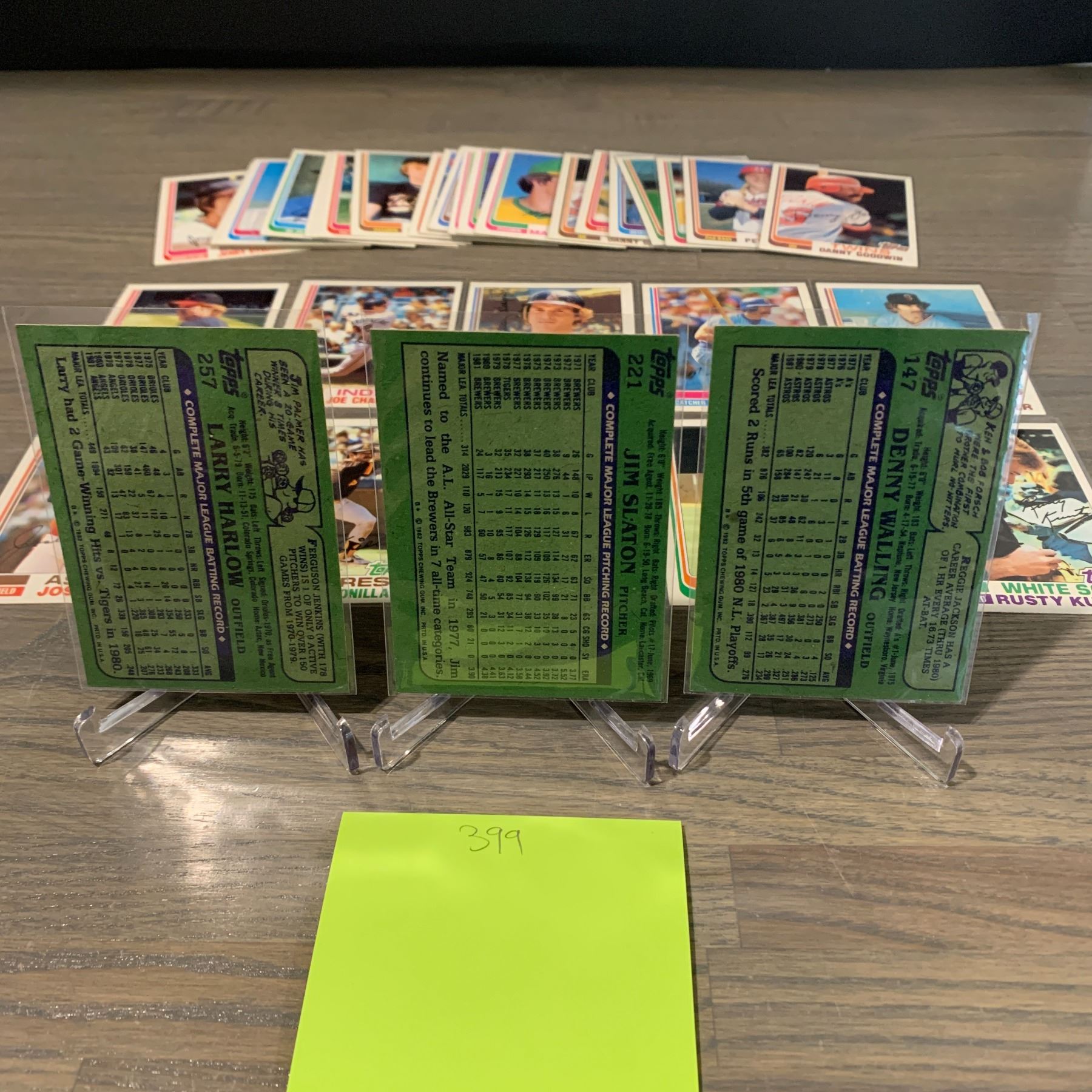 1982 Topps Baseball Cards. Jim Slaton #221, Larry Harlow #257, Denny Walling #147. We are a veteran owned company. Please look at the pictures carefully to determine what you believe the condition of collecitible is. We are currently accepting consignments. Email us a aeronhouse1994@gmail.com or visit our website, www.ahauctionhouse.com. We are currently seeking Star Wars related consignments.
