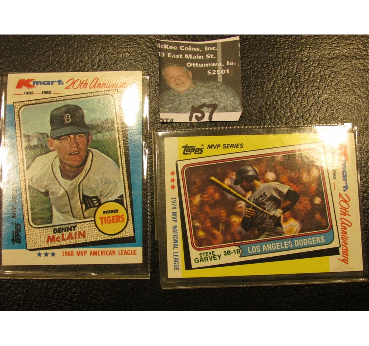 1982 Topps "Denny McLain" & "Steve Garvey" Kmart 20th Anniversary Cards with original autographs.