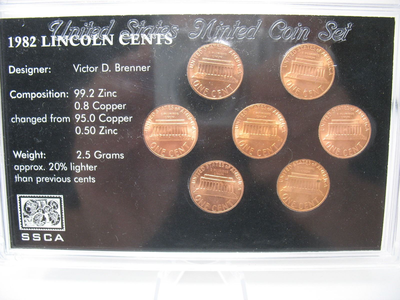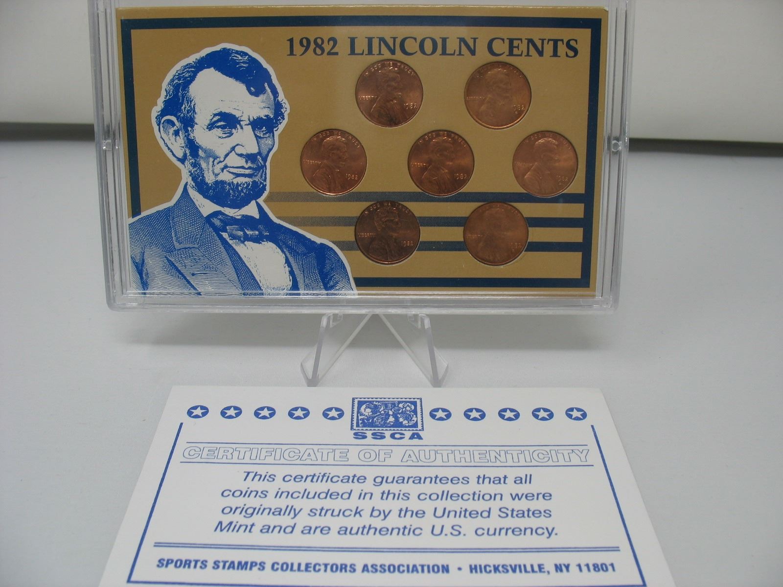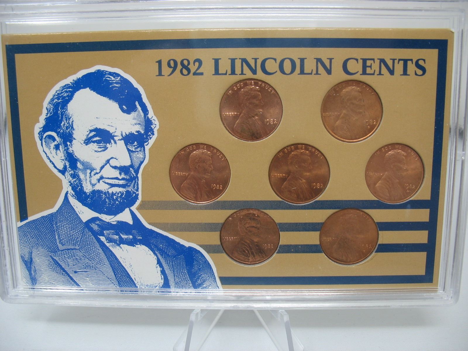 1982 US LINCOLN CENTS SET - 7 DIFFERENT COINS
