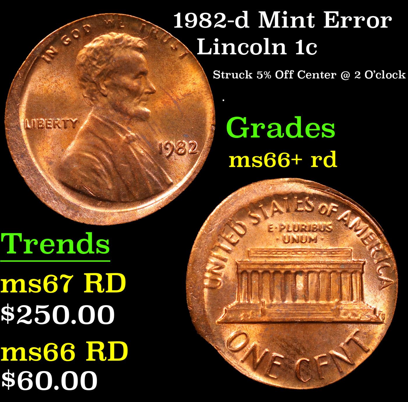 1982-d Mint Error Lincoln Cent 1c Grades GEM++ RD.