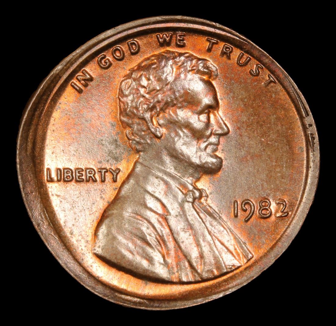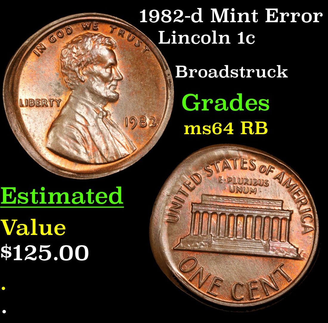 1982-d Mint Error Broadstruck . Lincoln Cent 1c Grades Choice Unc RB.