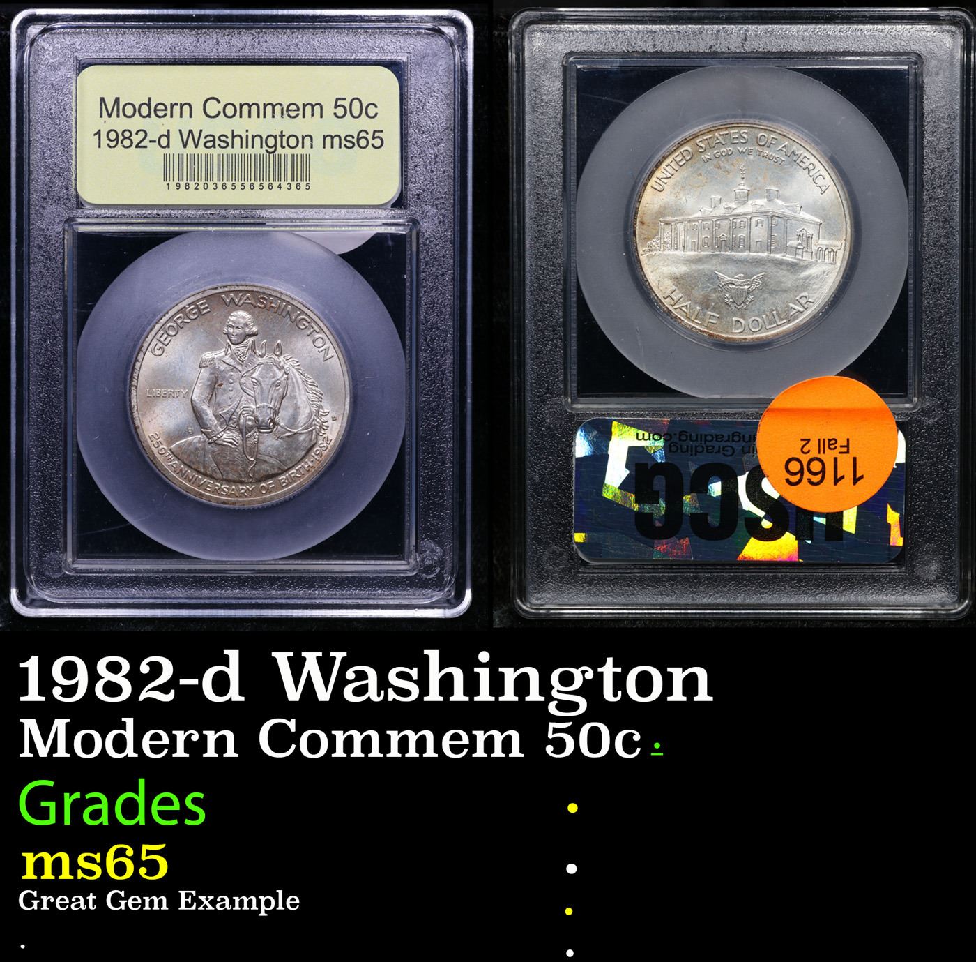1982-d Washington Modern Commem Half Dollar 50c Graded GEM Unc By USCG.