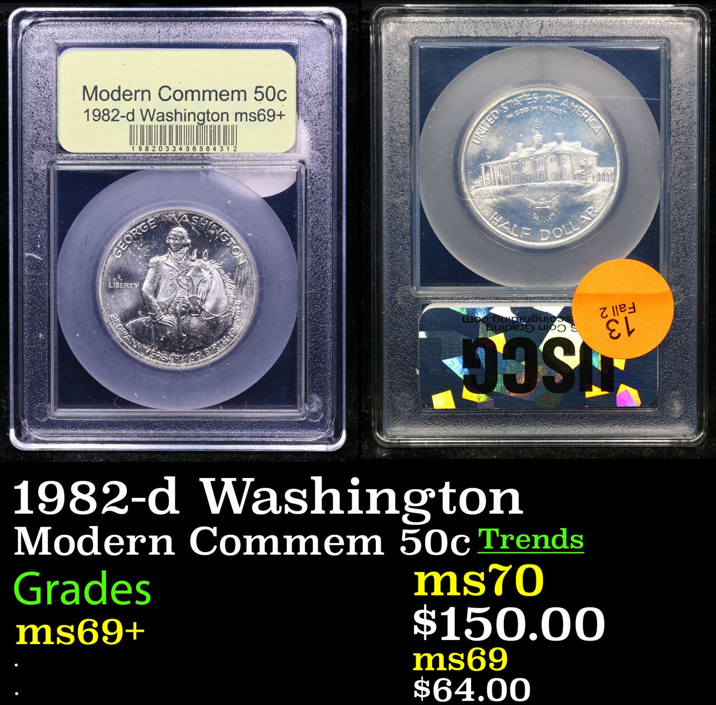 1982-d Washington Modern Commem Half Dollar 50c Graded ms69+ By USCG.