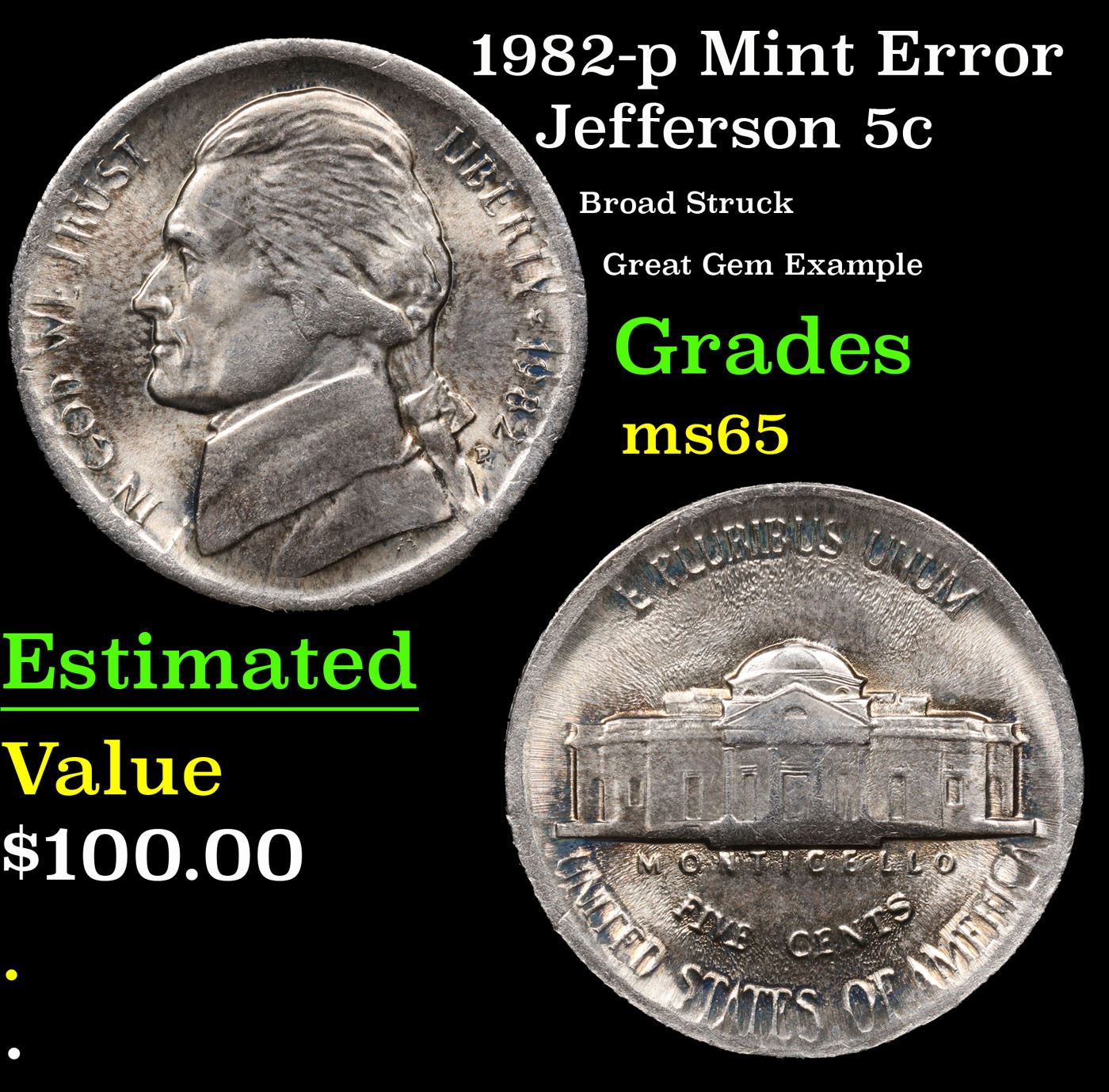 1982-p Mint Error Jefferson Nickel 5c Grades GEM Unc.