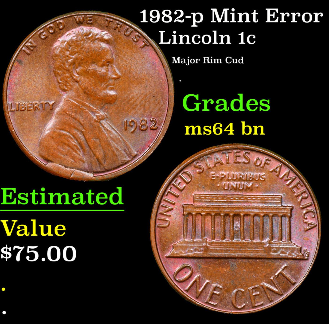 1982-p Mint Error Lincoln Cent 1c Grades Choice Unc BN.