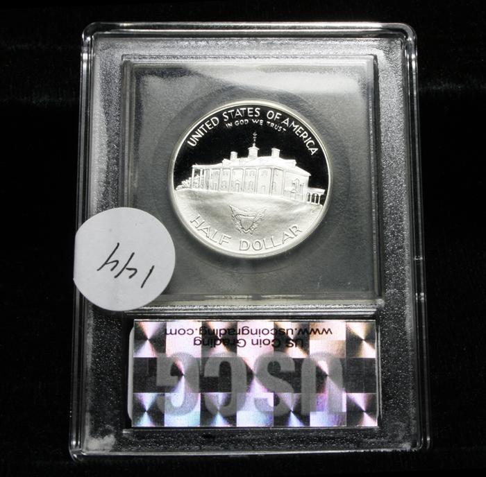 One of only 2 Modern Proof halves to be issued in 90% silver. This and the Bill of rights. Proof Commemorative Silver half Dollar Graded PF70 DCAM by USCG. Beautiful Silver Proof Commemorative celebrating the 250th Anniversary of the Birth of Washington. Estimated Value $75