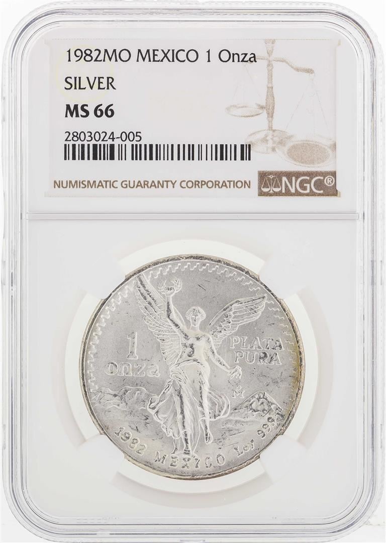 1982MO Mexico 1 Onza Silver Libertad Coin NGC MS66 Nice Reverse Toning