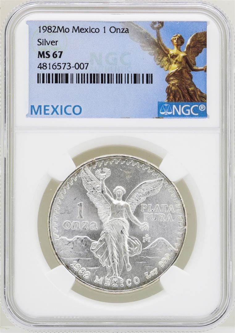 One 1982Mo Mexico Libertad Onza Silver Coins NGC MS67. NGC Certified.