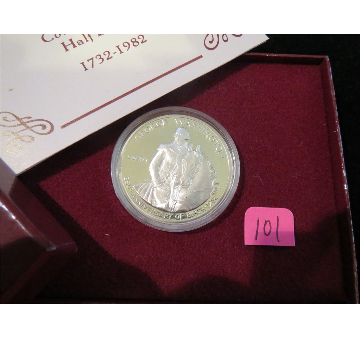 1982S George Washington Silver Commemorative Half Dollar "Proof" - with box and COA