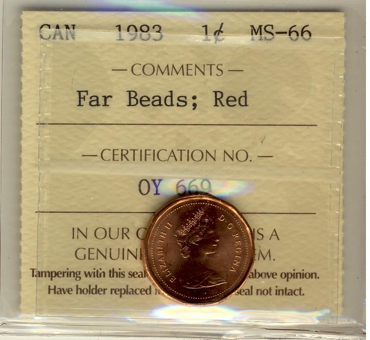 1983 1¢ Far Beads ICCS MS66RD.
