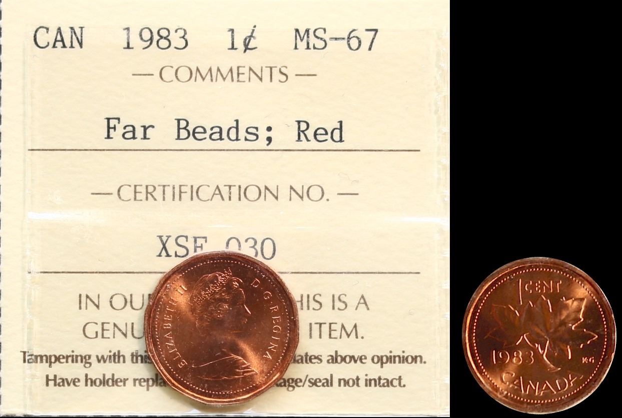1983 1¢ "Far Beads" ICCS Superb Gem Mint State-67 Red. Full red.