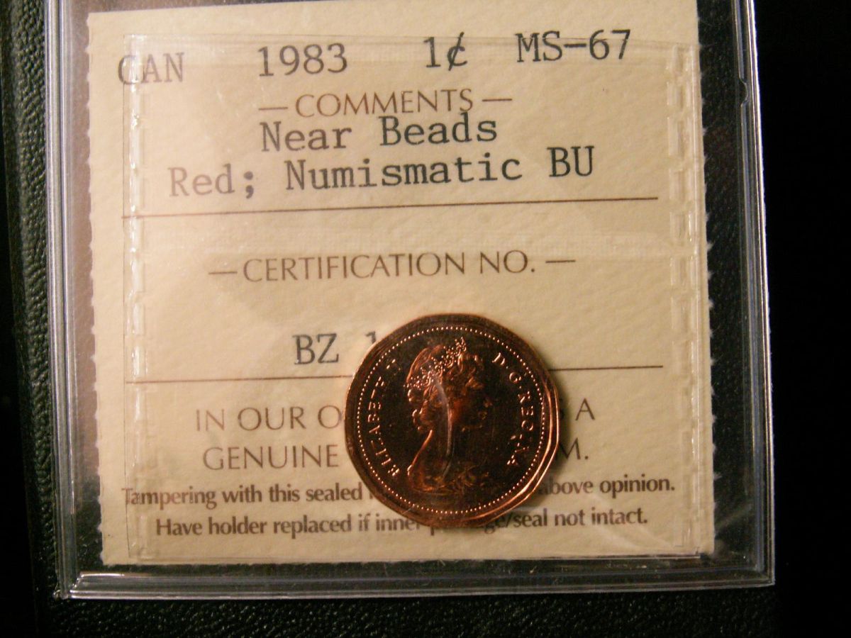 1983 1¢ Near Bds ICCS MS67 Numismatic BU. Unlisted in trend in this grade.