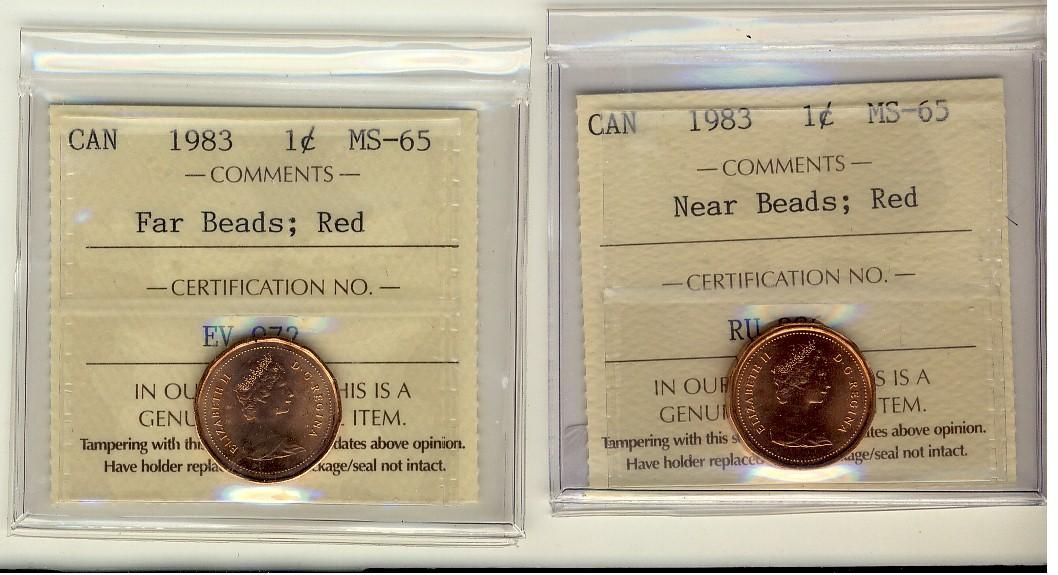 1983 1¢ Near Beads, Far Beads, Both Iccs MS65 Full Red