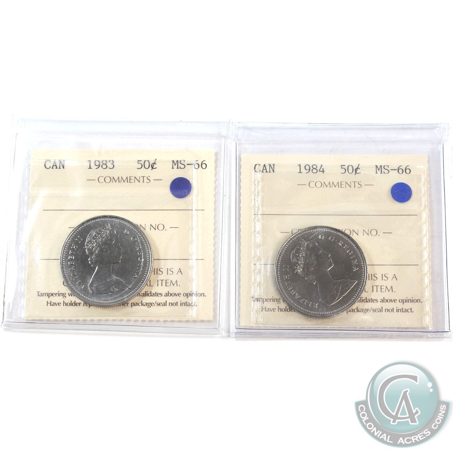 1983 & 1984 Canada 50-cent ICCS Certified MS-66. 2pcs