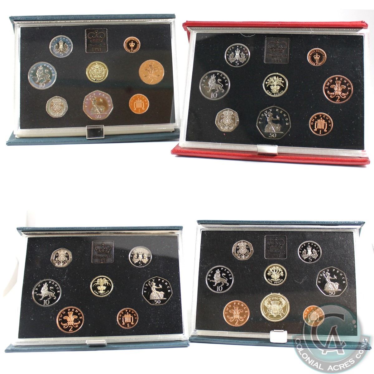 1983-1986 United Kingdom Proof Set Collection. You will receive each Set released between 1983 and 1986. Coins come housed in Original Mint Packaging. Please note coins may contain faint toning. 4pcs.