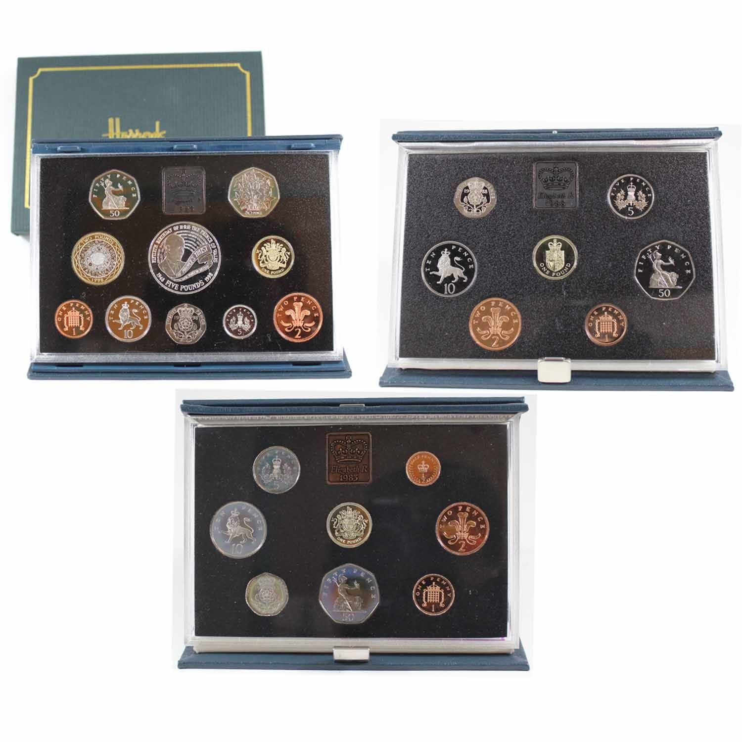 1983, 1988 & 1998 United Kingdom Proof Coin Collections in Original Hard Blue Folders with COAs (1983 some coins are toned). 3pcs
