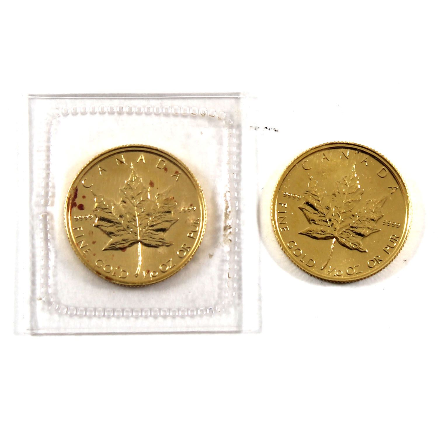 1983 & 1989 Canada 1/10oz .9999 Fine Gold Maple Leafs. 2pcs (TAX Exempt)