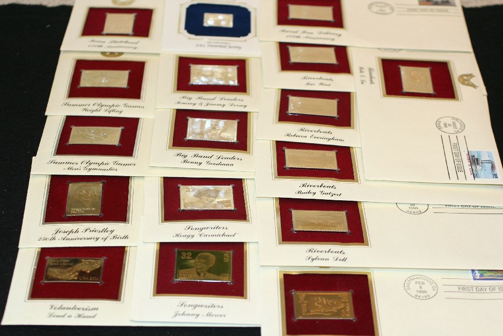 1983-1996 First Day Issue 22K Gold Replica Stamp W/Postal Stamp; Various Events; Lot of 17