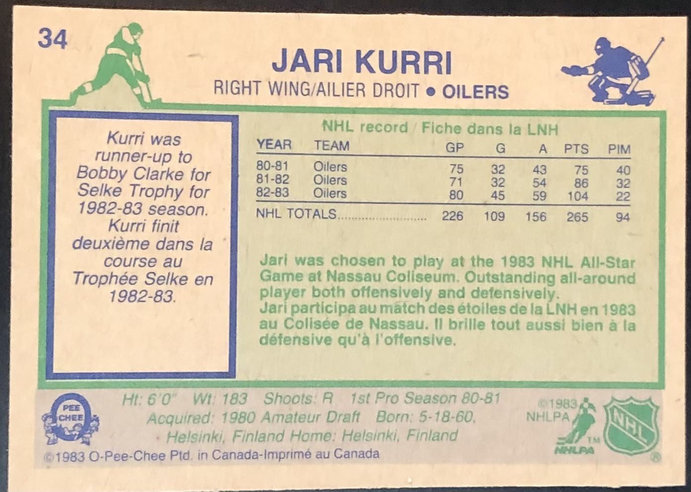 Card #34 NHL, hockey, vintage, hall of fame, OPC