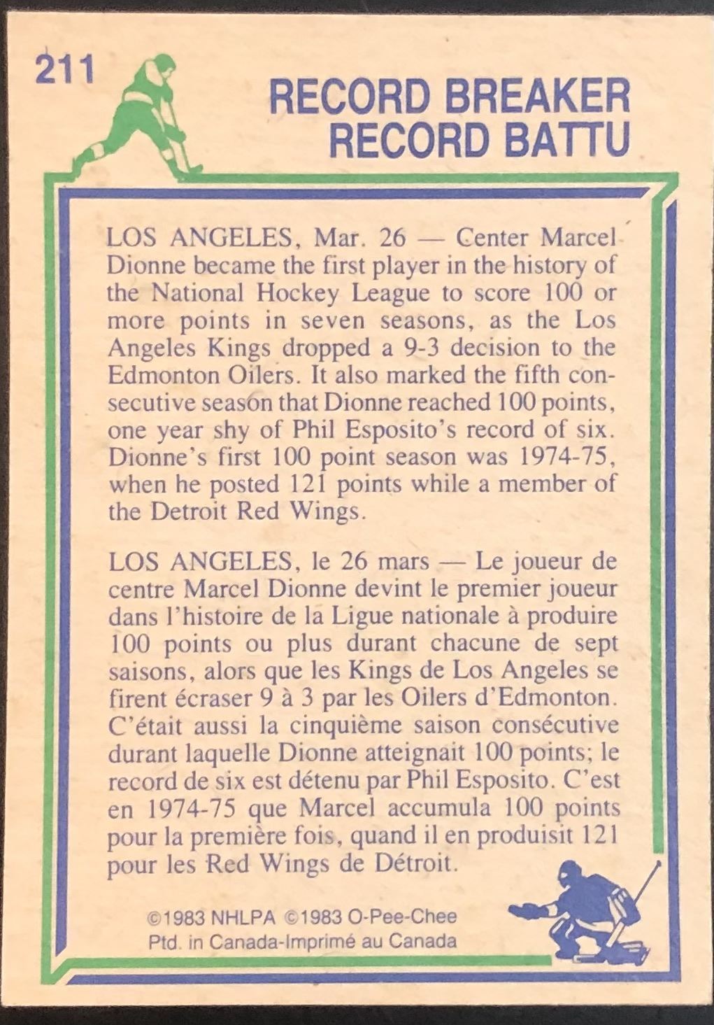 Card #211 OPC, vintage, NHL, hockey, hall of fame