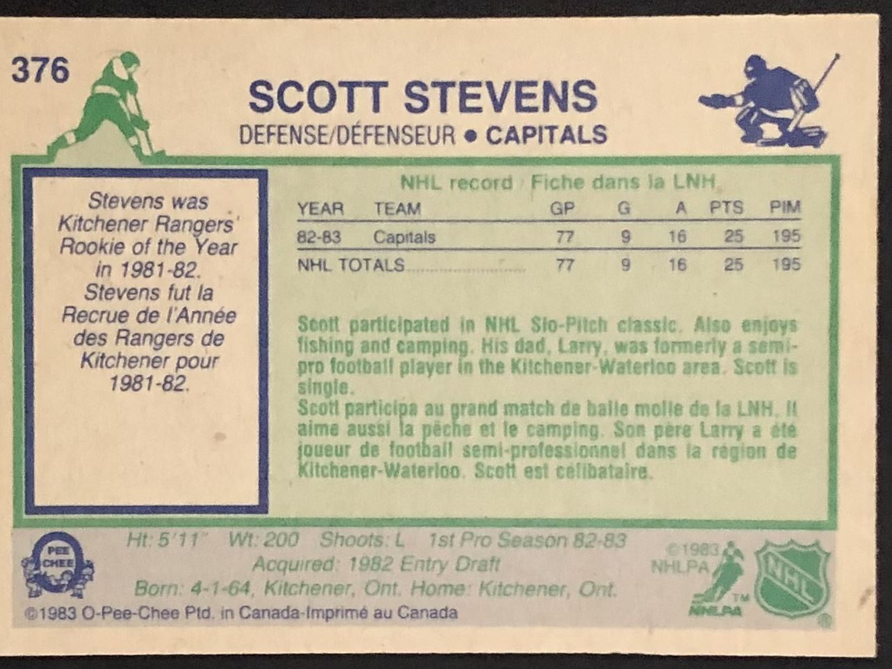 Card #376 NHL, vintage, hall of fame, OPC, rookie