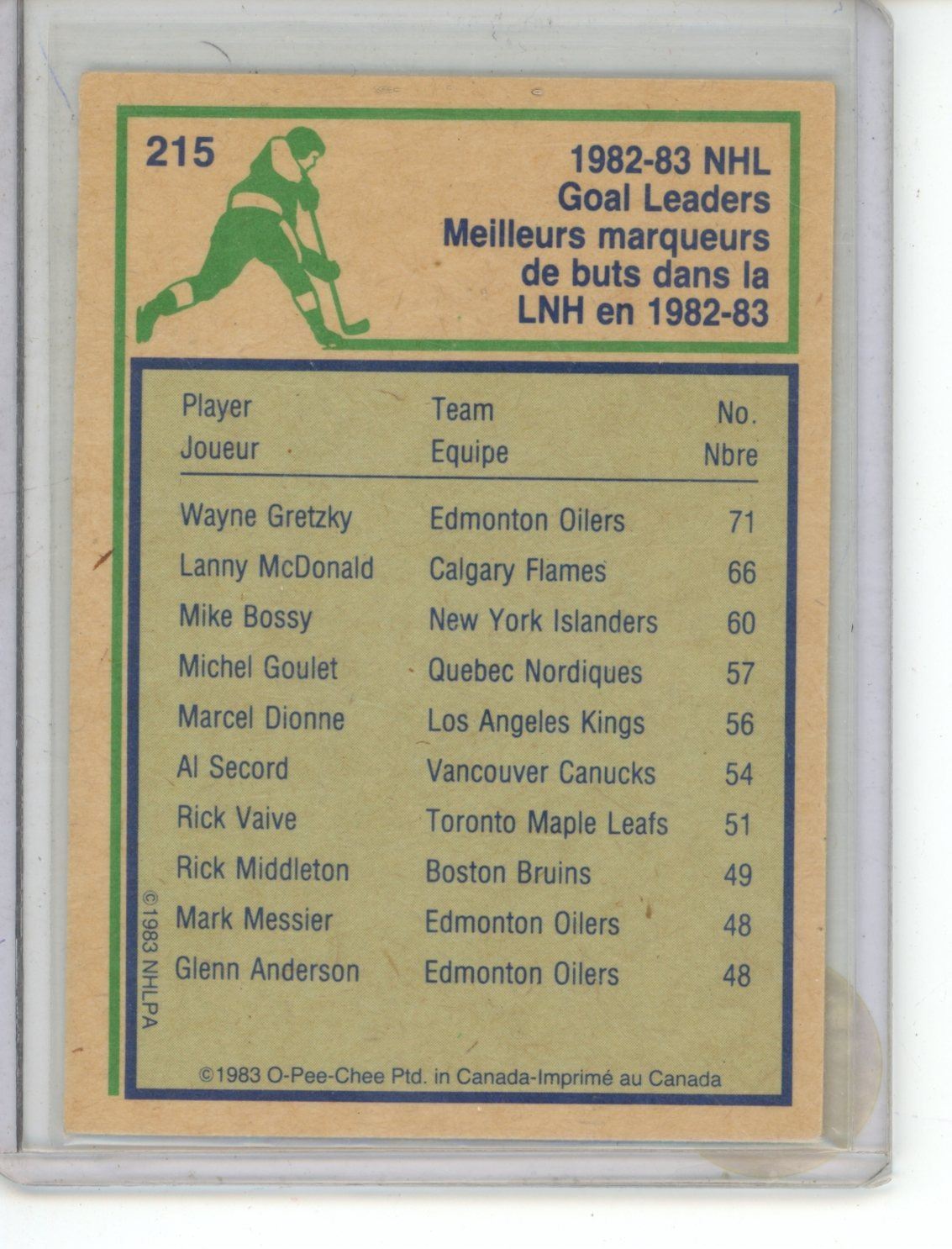 1983-84 OPC #215 Wayne Gretzky Goal Leader Card