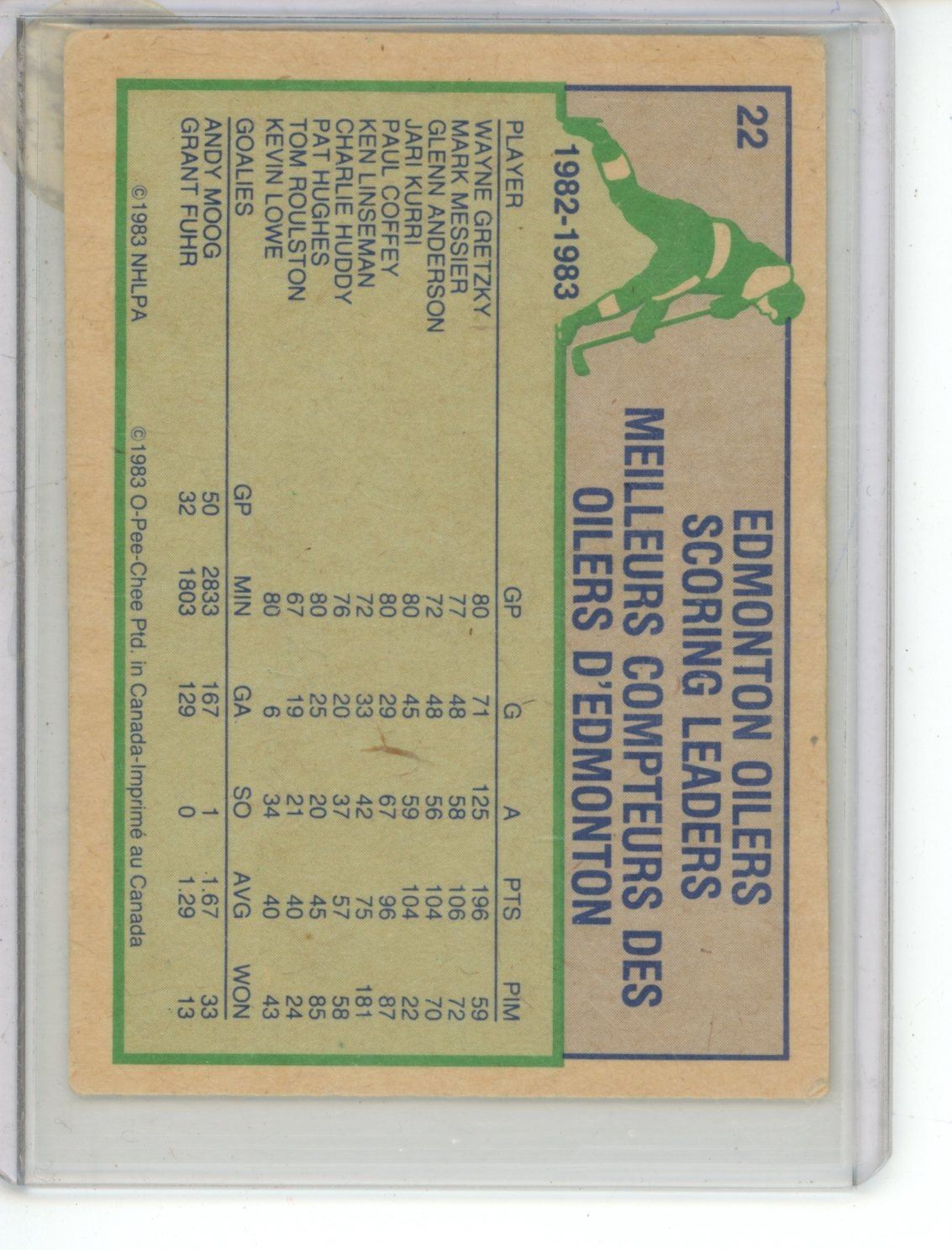 1983-84 Wayne Gretzky Oiler Leader OPC #22