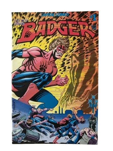 Created by Mike Baron, the comic breaks away from typical superhero tropes, presenting a character with a distinct personality and a somewhat unstable mental state. The Badger's abilities, which include heightened senses and martial arts prowess, are secondary to his unpredictable behavior and often humorous internal monologues. This first issue sets the stage for the series' blend of action, comedy, and psychological exploration. The art style, which reflects the independent comic scene of the early 1980s, contributes to the series' offbeat and unconventional tone. "Badger" #1 establishes the character's unusual world, populated by a diverse cast of characters and situations that challenge conventional superhero narratives. It's a key issue for collectors interested in the independent comic movement and those seeking a departure from mainstream superhero stories.