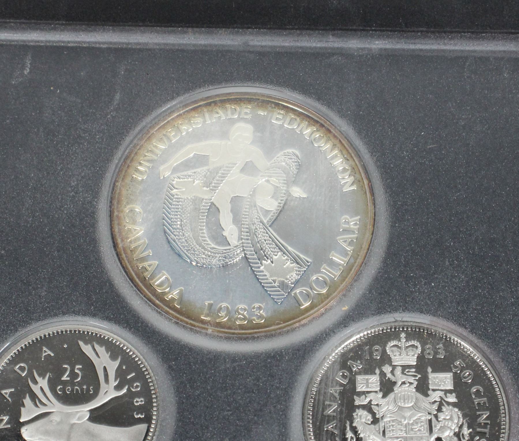 LARGER DOLLAR IS SILVER AND CELEBRATES UNIVERSIADE EDMONTON ALBERTA (WORLD UNIVERSITY GAMES). COMES WITH PAPERWORK, NO OUTER BOOK CASE.