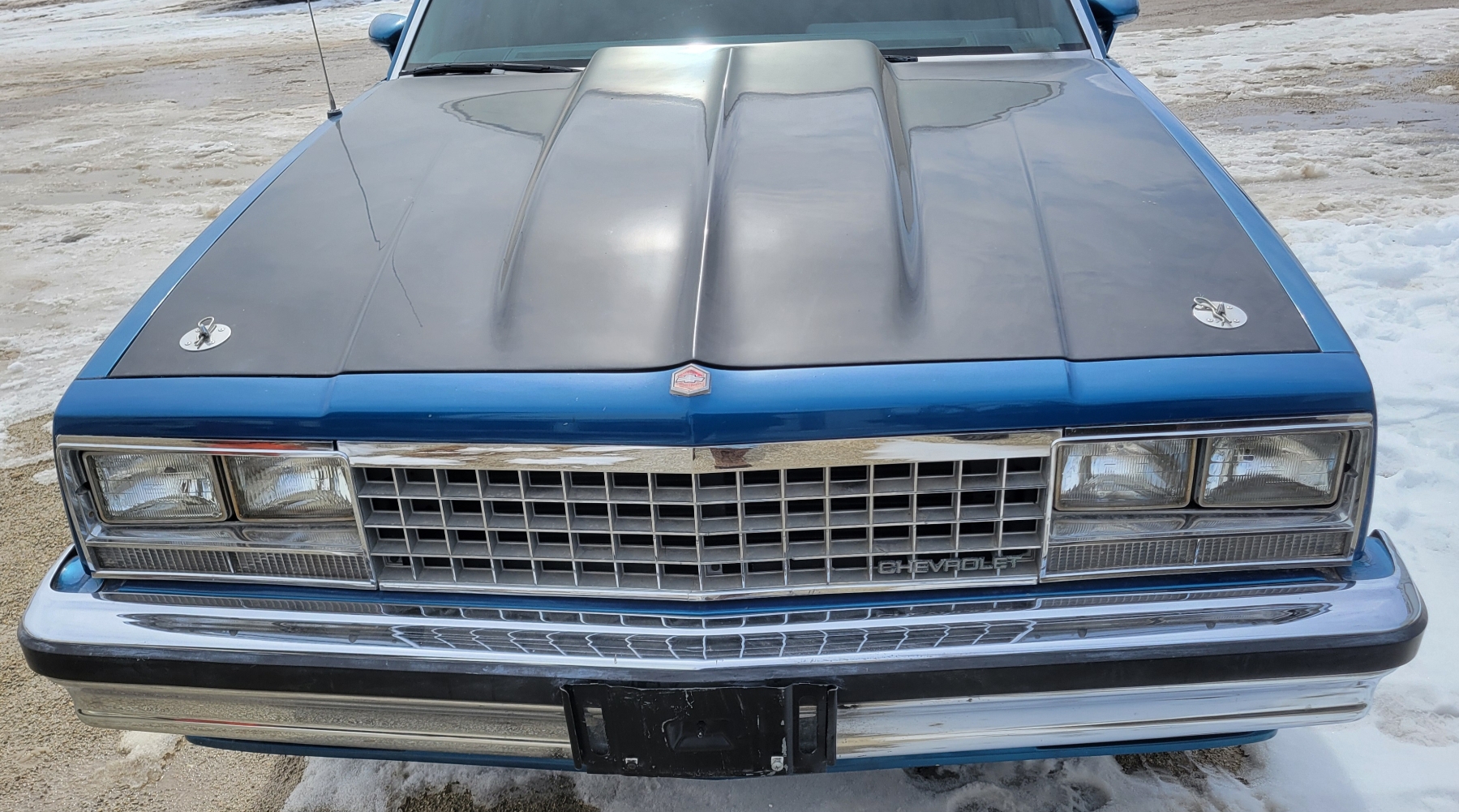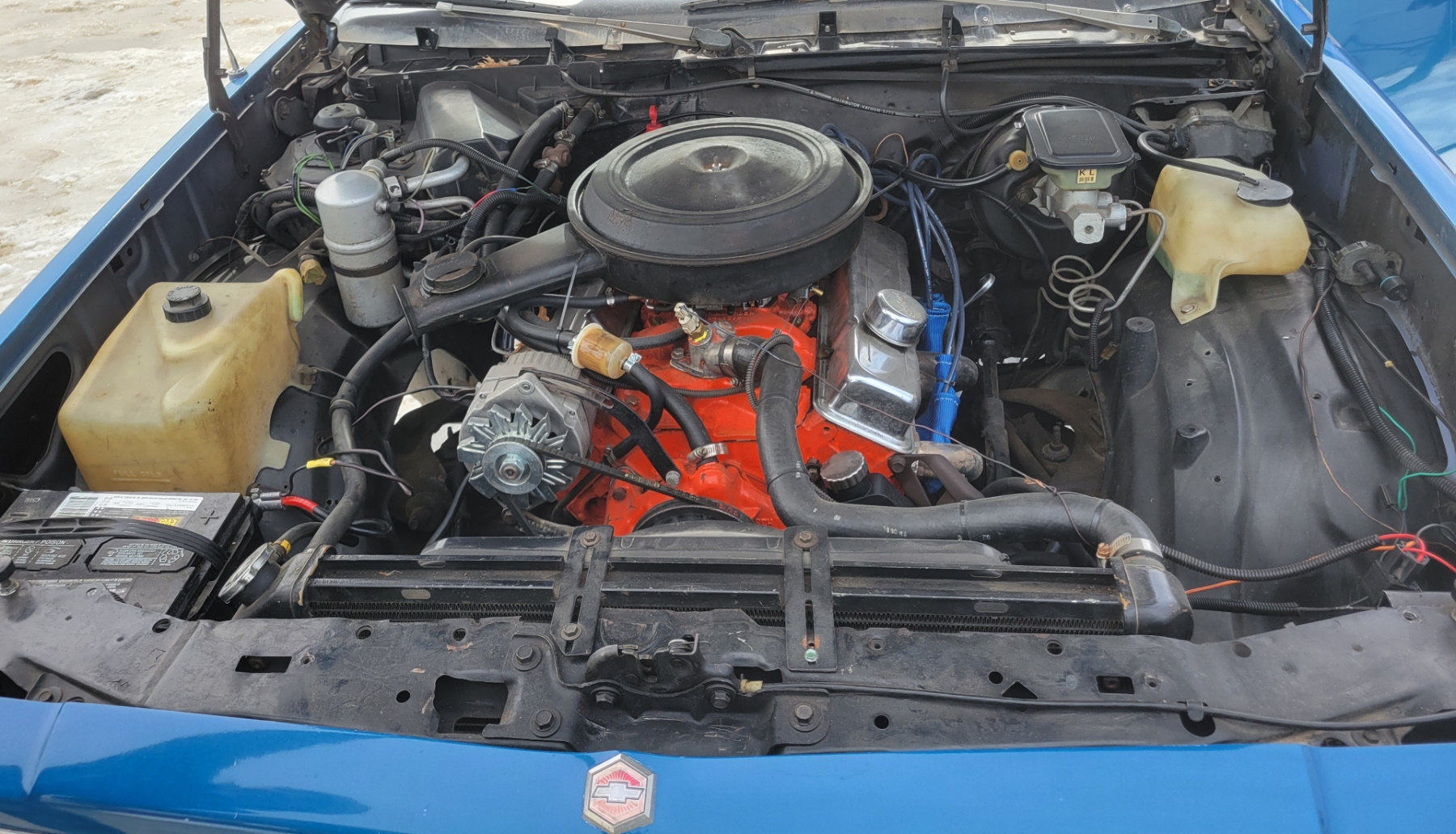 NOTE: BLUE EXTERIOR & INTERIOR - 4DR - 400 R TRANS AUTO - 350 ENGINE - SS GAUGE PACKAGE DASH - HARDWOOD FIBRE GLASS HOOD - 8 CYL - 31,877 KM - TACH NONFUNCTIONING - DUAL EXHAUST. W/OWNERSHIP.