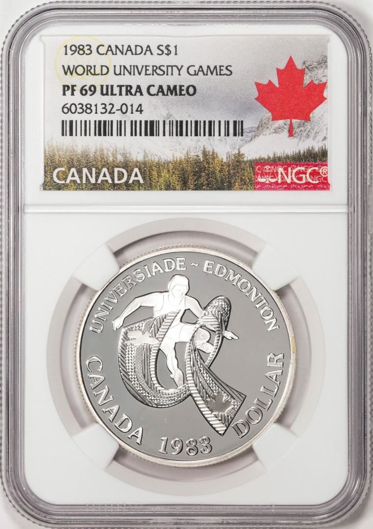 1983 Canada $1 Proof World University Games Silver Dollar Coin NGC PF69 Ultra Cameo