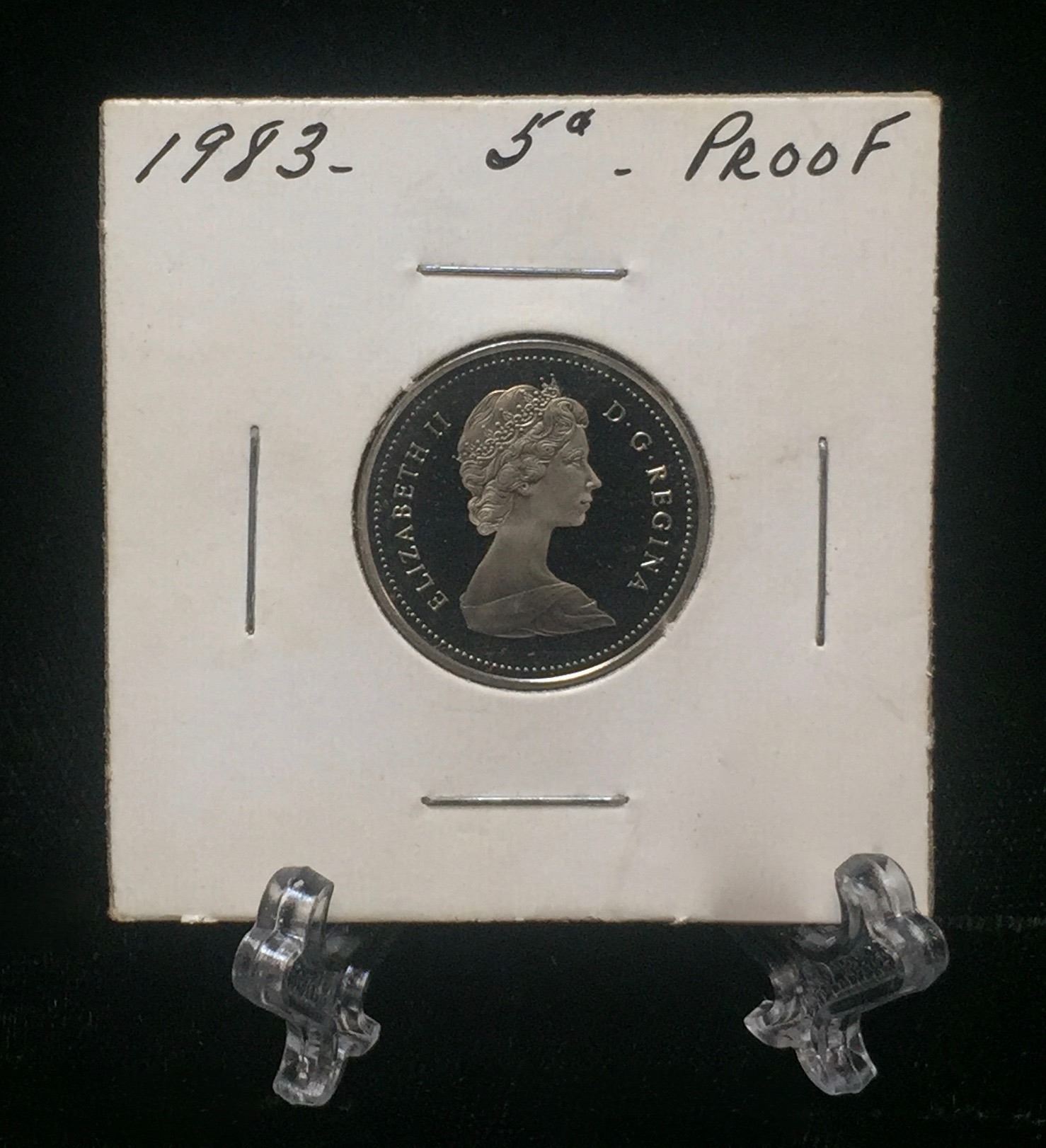 Lot 323; Royal Canadian Mint, 1983 Canada 5-Cents Proof Nickel Very Nice, Queen Elizabeth II Effigy, Condition as Pictured