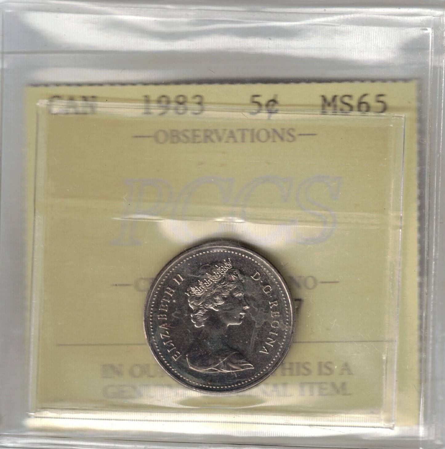 1983 Canada 5¢ PCCS MS65 (Professional Coin Certification System)
